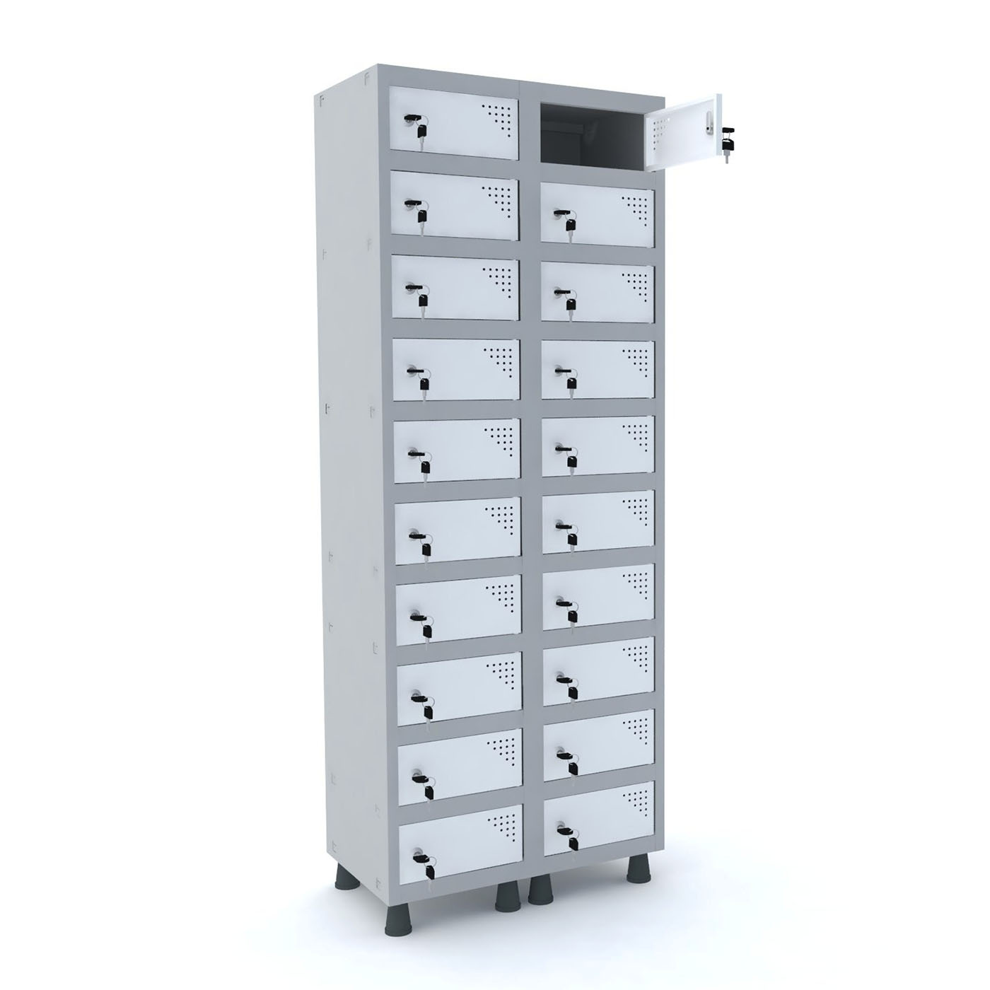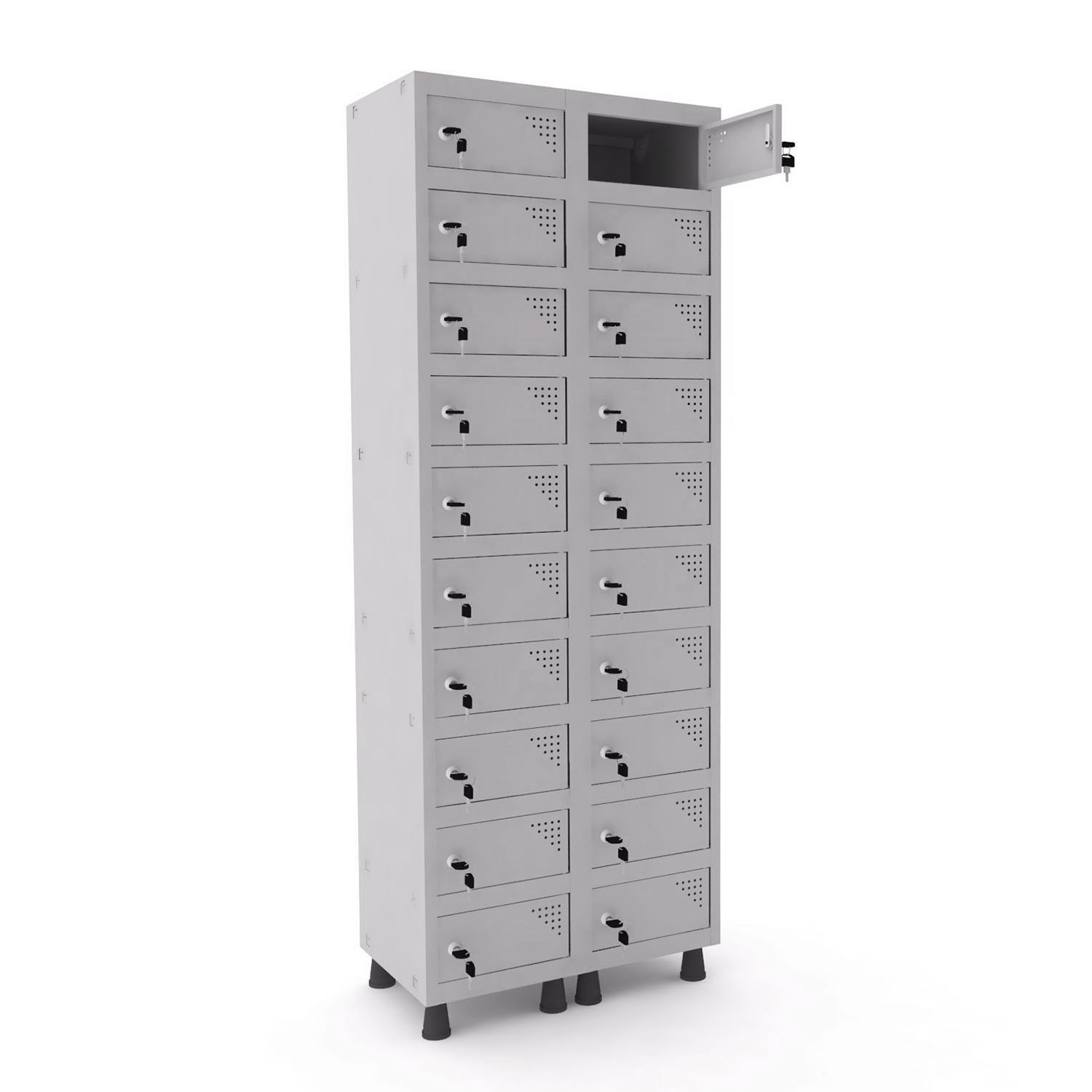 Uma das características mais notáveis deste armário é seu sistema de segurança. Equipado com uma fechadura com chave, o Armário 188B oferece tranquilidade, permitindo que os usuários armazenem seus objetos mais valiosos com confiança. Isso é especialmente importante em locais onde a proteção de documentos e bens pessoais é essencial.