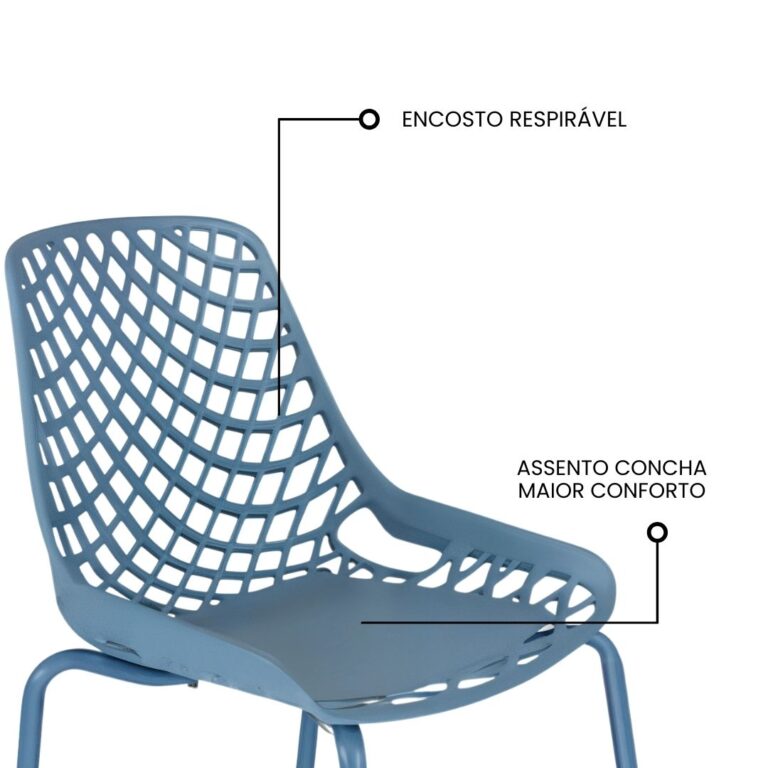 Seu assento e encosto são ergonomicamente projetados para proporcionar maior conforto durante a jornada de trabalho, enquanto sua estrutura robusta garante estabilidade e suporte para até 110 kg. As sapatas em PVC antiderrapante reforçam a segurança, mesmo em pisos lisos.