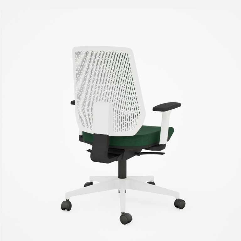 O chassi do assento, com 452 mm de largura e 420 mm de profundidade, garante estabilidade e resistência, mesmo em uso contínuo. Seu sistema de regulagens permite que o colaborador encontre facilmente a posição ideal para manter a produtividade ao longo do dia.