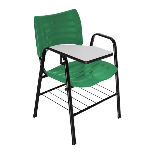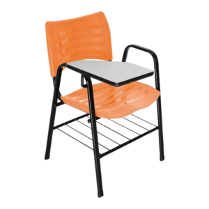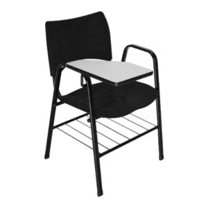 A estrutura robusta da cadeira, com pintura disponível em preto, cinza, alumínio ou branca, assegura durabilidade e estabilidade. A prancheta escamoteável e os braços, de fato, adicionam funcionalidade prática ao design, atendendo às necessidades específicas do ambiente universitário. A possibilidade de escolher entre diferentes cores de pintura permite a personalização estética, sendo assim, adapta-se à identidade visual da instituição de ensino.