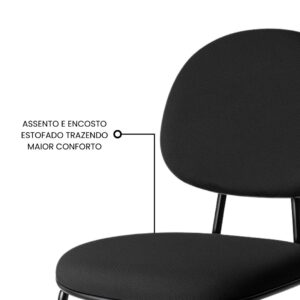 Sua estrutura conta com pés fixos palito com L’duplo, garantindo estabilidade e leveza visual, perfeita para salas de espera, escritórios, consultórios e espaços de reunião. O assento e encosto no modelo executivo reforçam o conforto durante o uso prolongado, promovendo bem-estar e contribuindo para a produtividade no dia a dia corporativo.
