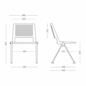 Sua estrutura é composta por assento e encosto injetados em polipropileno resistente, com tubo em aço carbono e processo de estampo que adiciona vinco, aumentando a estabilidade e a vida útil do produto. A pintura eletrostática garante um acabamento durável, ideal para o uso diário em escritórios, salas de reunião, recepções, auditórios e espaços colaborativos.