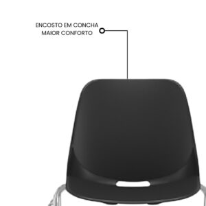 Além disso, a cadeira é empilhável, facilitando o armazenamento e otimizando o uso do espaço. Está disponível em seis cores (preto, mostarda, basalto, azul, branco e vermelho), permitindo personalização de acordo com a identidade visual do ambiente.