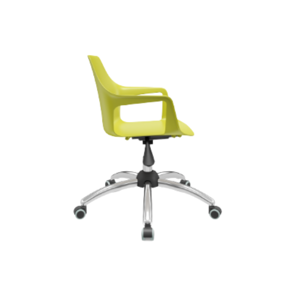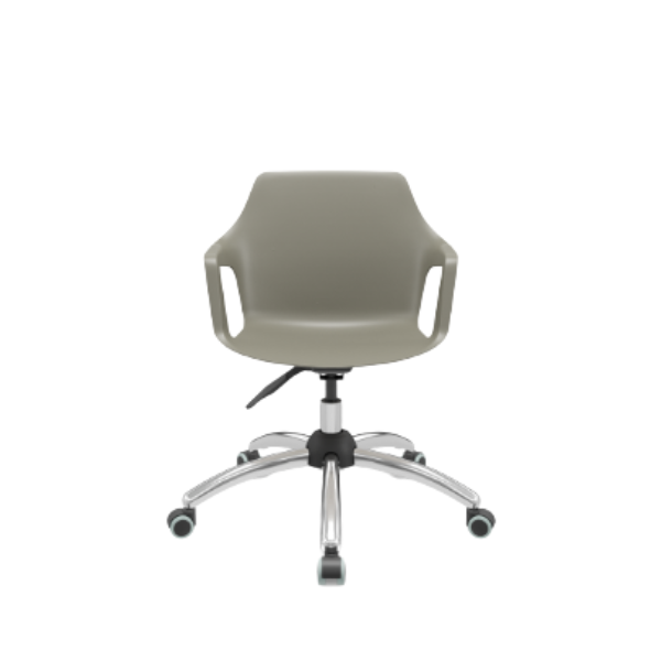- Cadeira giratória em forma de concha, fabricada em termoplástico