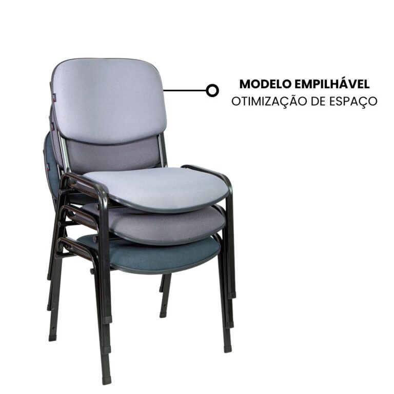 Um diferencial importante é sua facilidade de armazenamento: a cadeira é empilhável em até 7 unidades (sem prancheta), otimizando o espaço quando não está em uso. Além disso, é entregue totalmente montada, pronta para uso imediato, sem necessidade de ferramentas ou montagem adicional.