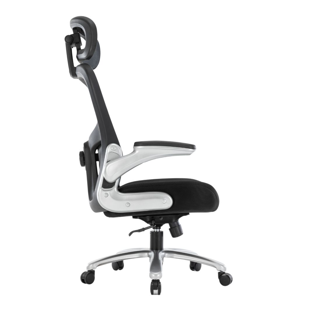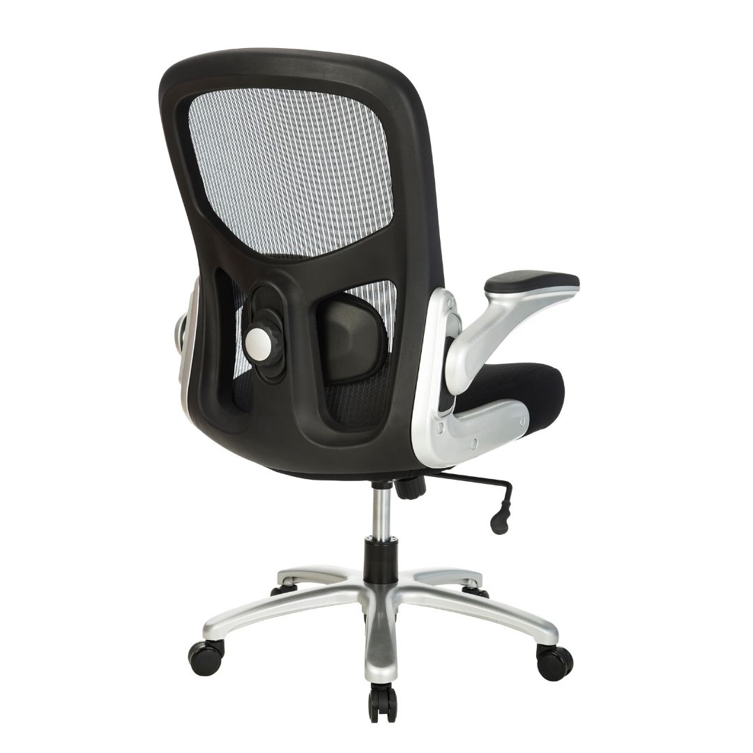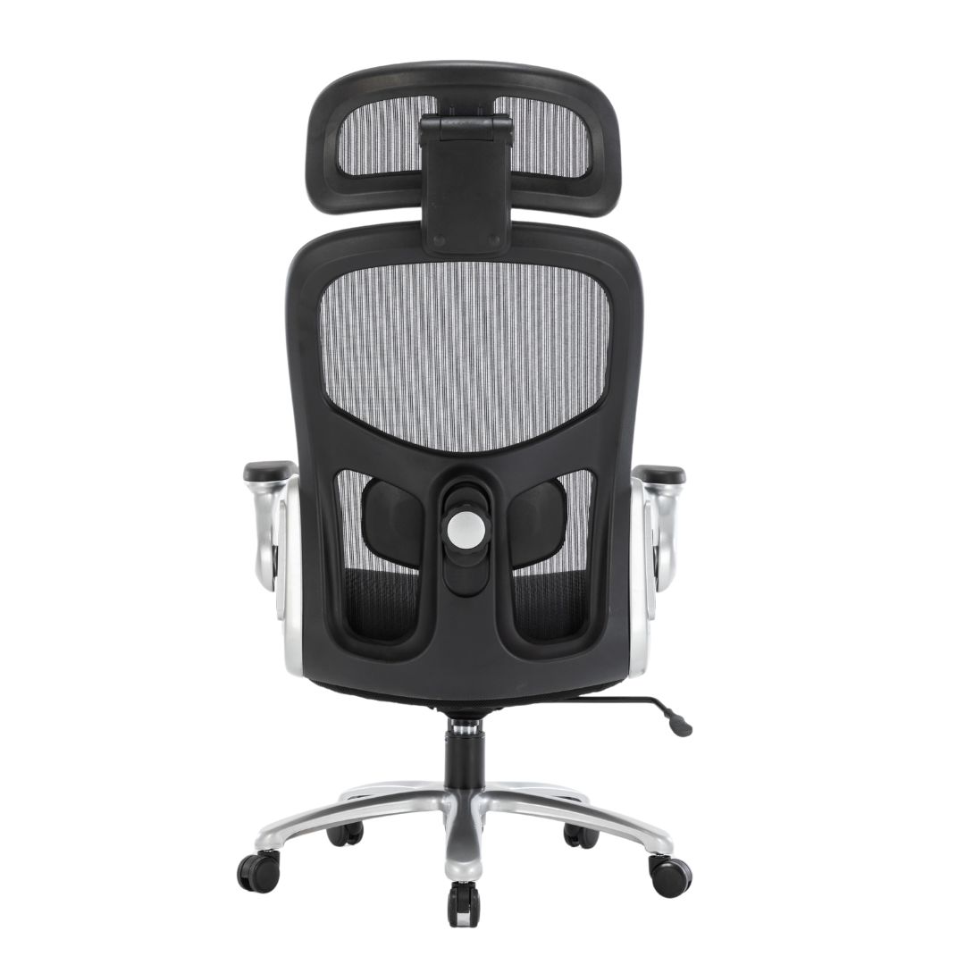 - Encosto com Apoio Lombar: Estrutura em tela de poliéster e nylon, proporcionando ventilação e suporte para a lombar.