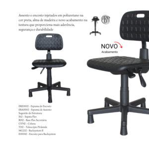 Nossas cadeiras secretárias industriais giratórias são construídas com materiais de alta qualidade para garantir conforto e durabilidade. O assento é composto por madeira multi laminada e espuma de densidade controlada, proporcionando o máximo de conforto durante longas horas de trabalho. Além disso, o revestimento em poliuretano do assento é resistente e fácil de limpar, mantendo a cadeira com aparência impecável.