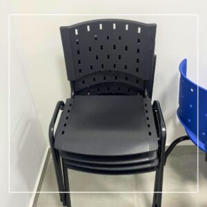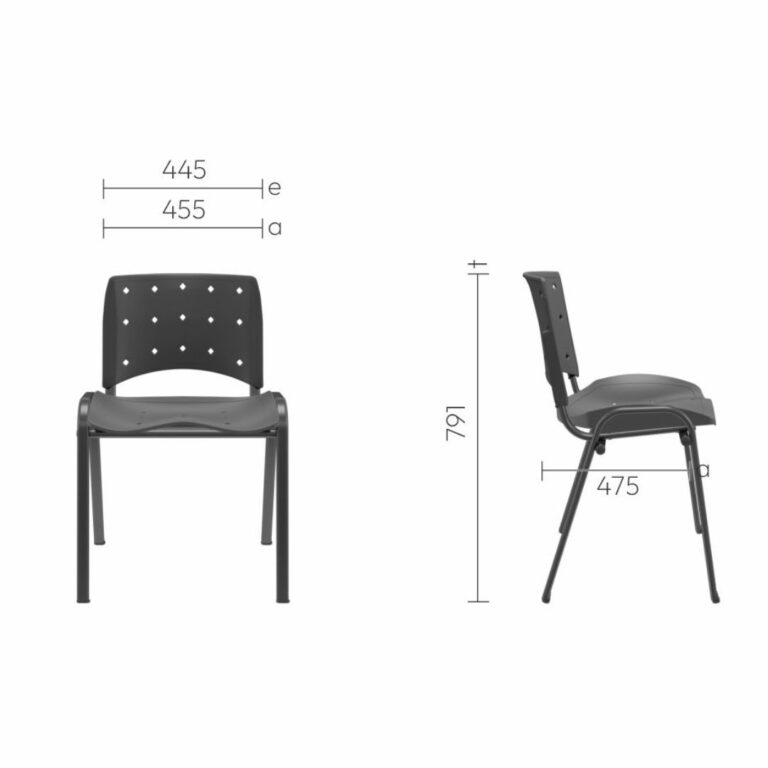 Com estrutura fixa e alta resistência, suporta até 110 kg e está disponível em quatro opções de acabamento: preto, cinza, cromado e branco. Seu assento e encosto em termoplástico são fáceis de limpar e oferecem conforto mesmo em longas jornadas.