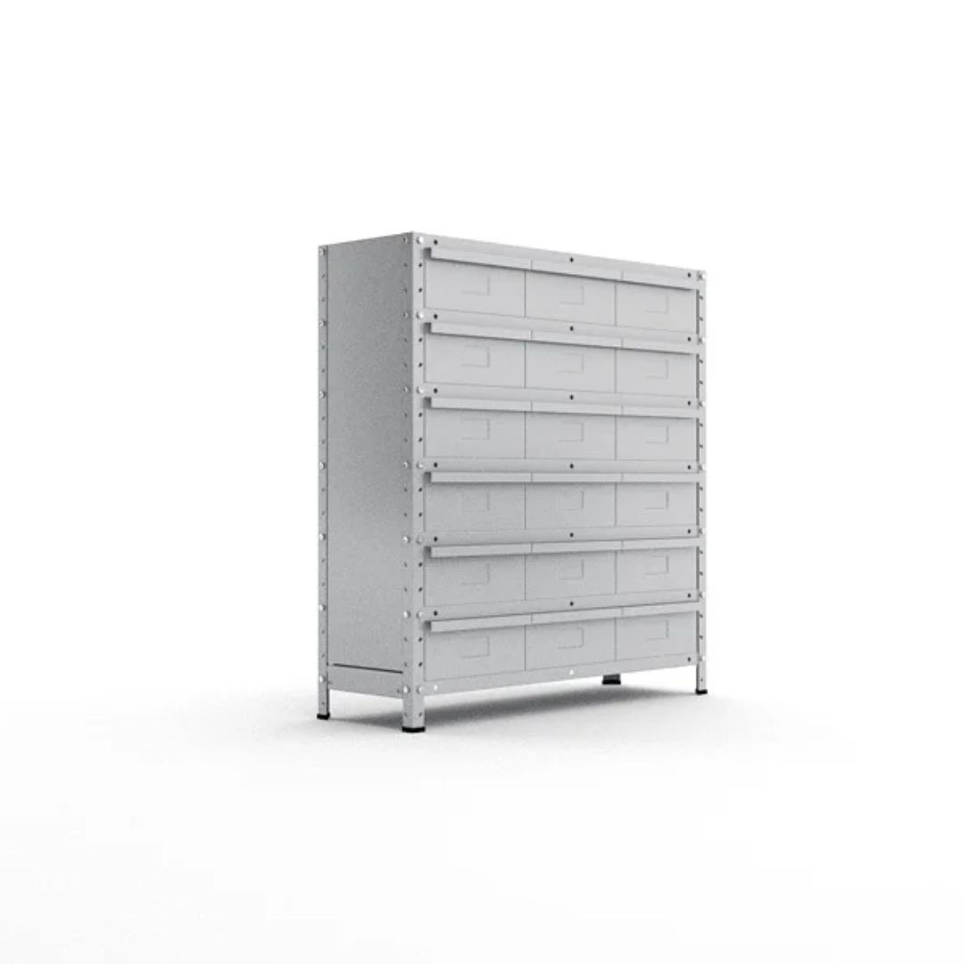 Com 36 gavetas (120x150x300mm), você terá amplo espaço para guardar documentos, materiais e outros itens essenciais. As colunas são confeccionadas em chapa 14, enquanto as prateleiras são em chapa 22, garantindo resistência e durabilidade.