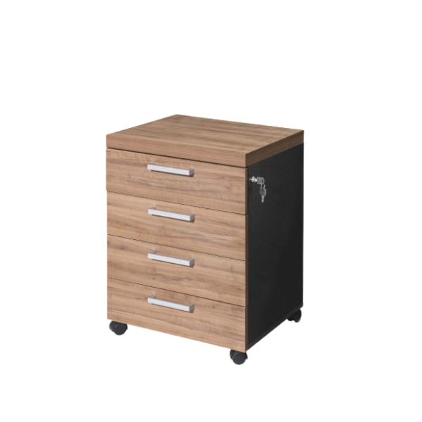 A segunda opção do gaveteiro oferece quatro gavetas com chave, proporcionando ainda mais espaço de armazenamento seguro para documentos confidenciais e objetos de valor. A segurança é uma prioridade, e as gavetas com chave garantem a proteção adequada. As dimensões são as mesmas da opção 1, com 470 mm de largura, 400 mm de profundidade e 670 mm de altura.