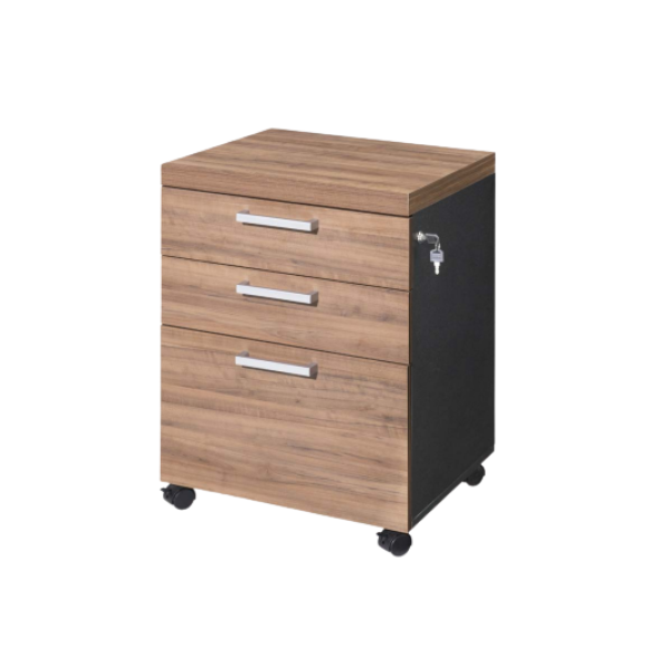 A primeira opção do gaveteiro volante apresenta duas gavetas e um gavetão com chave. Essa configuração é ideal para quem precisa armazenar documentos e objetos de valor com segurança. As gavetas com chave fornecem um espaço reservado para itens sensíveis, enquanto as duas gavetas adicionais são perfeitas para organizar material de escritório e documentos do dia a dia. Além disso, com dimensões de 470 mm de largura, 400 mm de profundidade e 670 mm de altura, essa opção se adapta facilmente a diferentes espaços de trabalho.