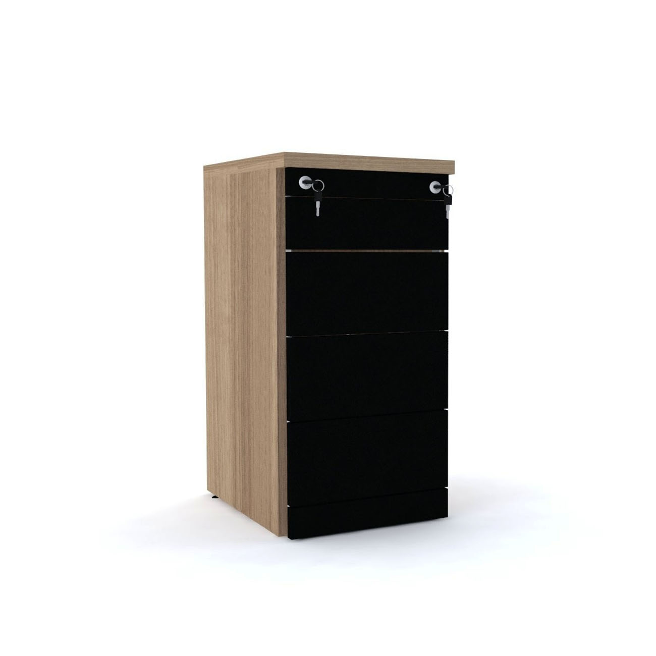 Uma característica notável deste gaveteiro é a inclusão de duas chaves para a tranca das gavetas, garantindo a segurança de seus documentos confidenciais e objetos de valor. Essa característica é particularmente valiosa em ambientes de escritório onde a privacidade e a proteção de informações são fundamentais.