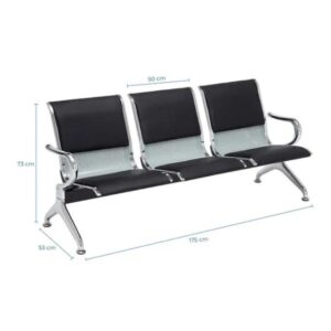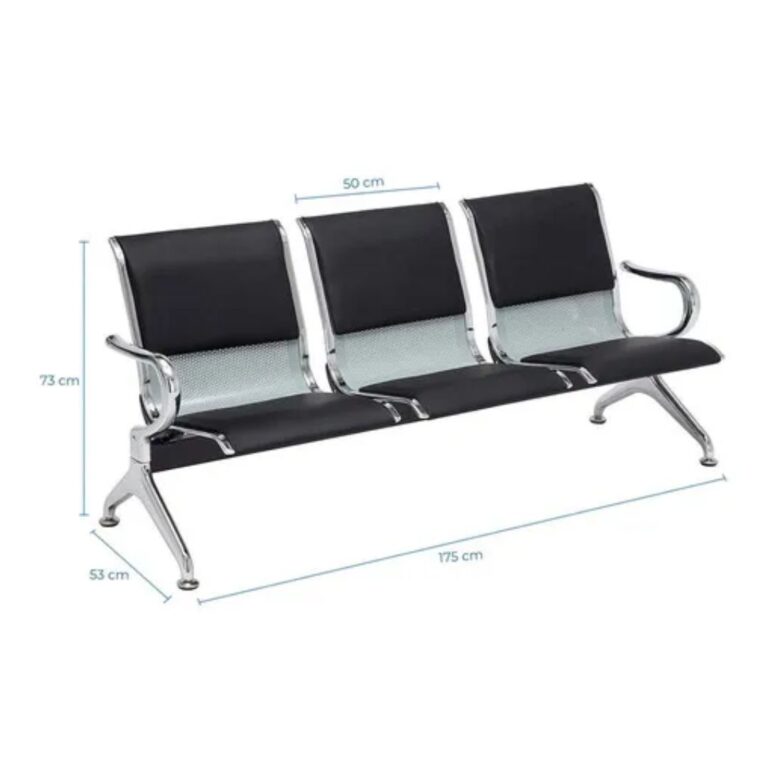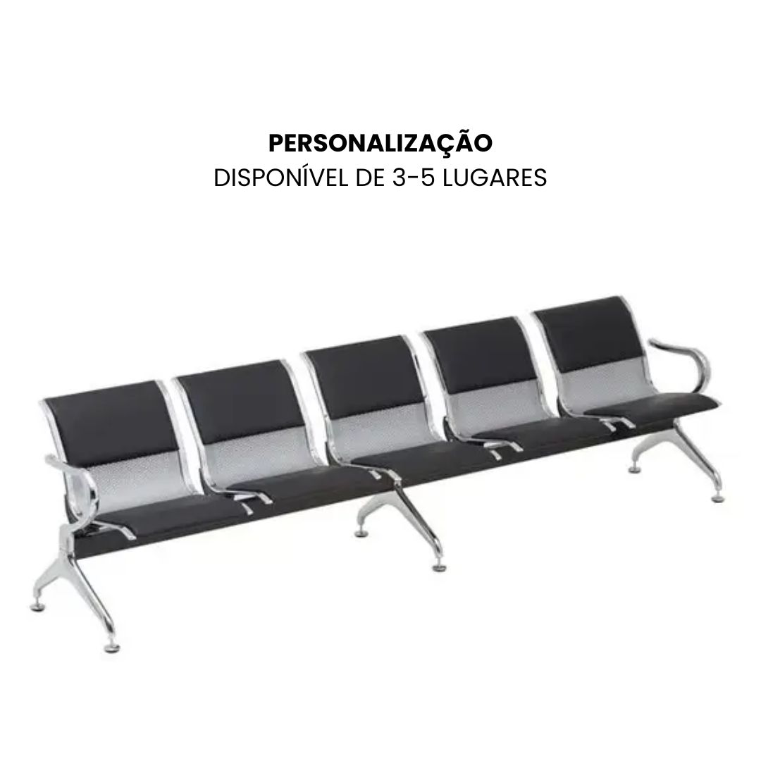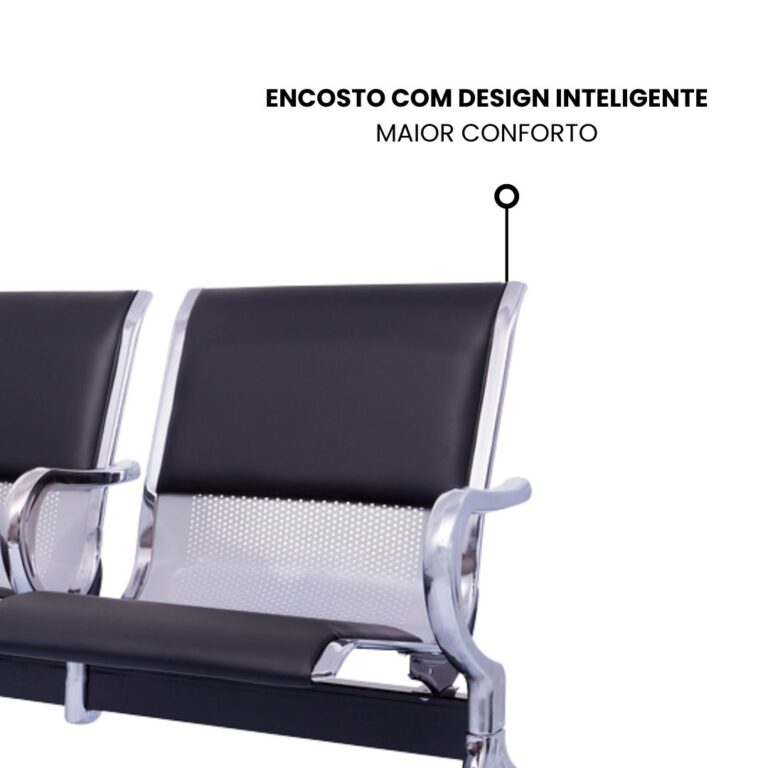 Seu design moderno favorece a ergonomia e a produtividade, proporcionando assentos confortáveis com espuma laminada revestida em couríssimo preto. Além de oferecer uma experiência agradável aos usuários, transmite uma imagem profissional e elegante ao espaço.