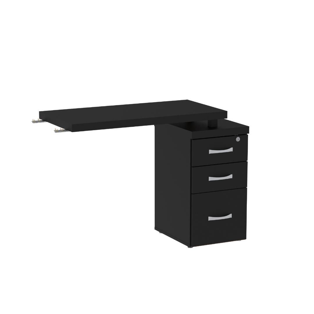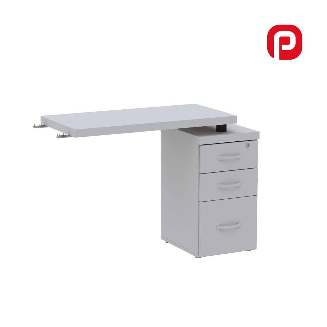 - Gaveteiro integrado: com 4 gavetas espaçosas, oferece armazenamento prático para documentos e materiais essenciais.