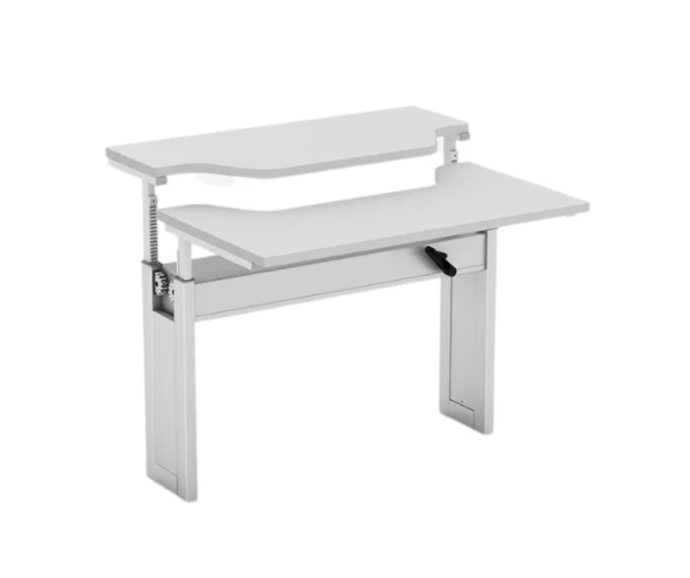 - Mesa ergonômica com regulagem de altura sem sapata e tampo reto