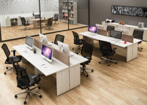 Oferecemos uma variedade de biombos para atender às suas necessidades. Nossos biombos são confeccionados em BP 15mm com fita de borda de 1mm, proporcionando leveza e estilo. Para maior robustez, contamos com biombos de plataforma em BP 25mm com fita de 2mm. Essas opções são perfeitas para criar divisões elegantes e funcionais em qualquer ambiente de trabalho.