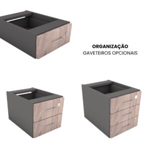 Seu design ergonômico e funcional favorece a produtividade e a interação entre equipes, mantendo o conforto durante longas jornadas de trabalho. A estrutura robusta e o tampo em MDF de alta densidade garantem durabilidade e estabilidade, enquanto o sistema de gestão de cabos mantém o espaço sempre organizado e visualmente limpo.