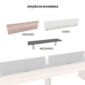 Ideal para escritórios corporativos, coworkings e ambientes de estudo, a Estação Expansive Work combina estilo, praticidade e versatilidade. Além disso, pode incluir divisórias, gavetas ou suportes de monitor, otimizando ainda mais o uso do espaço.