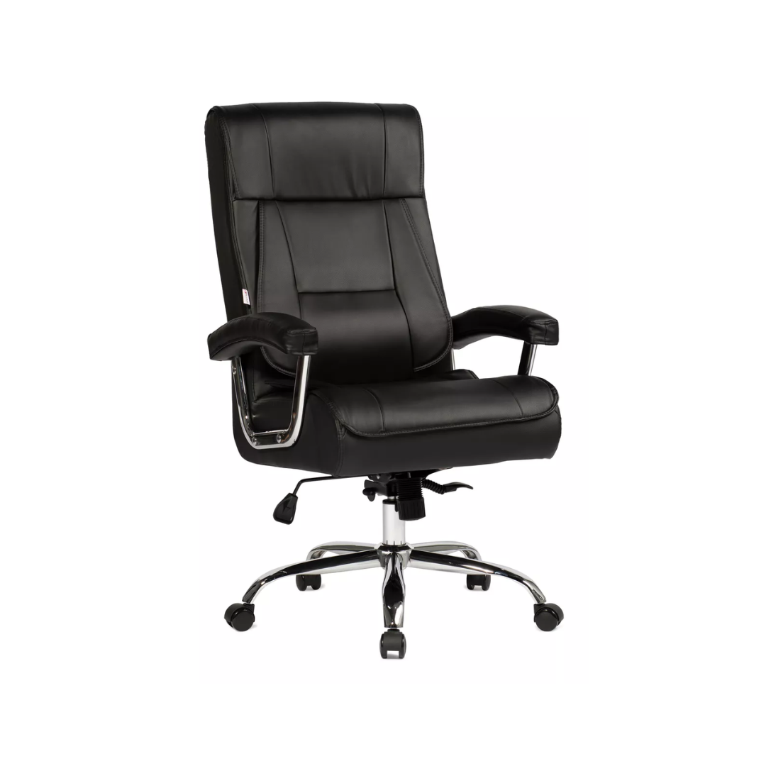 A Poltrona Aura Presidente é equipada com um mecanismo excêntrico que permite ajustes de altura, proporcionando a posição ideal para cada usuário. A aranha cromada de 350mm e o pistão classe 3 cromado garantem robustez e estabilidade, enquanto os rodízios em PU asseguram uma mobilidade suave e silenciosa em diversos tipos de piso.
