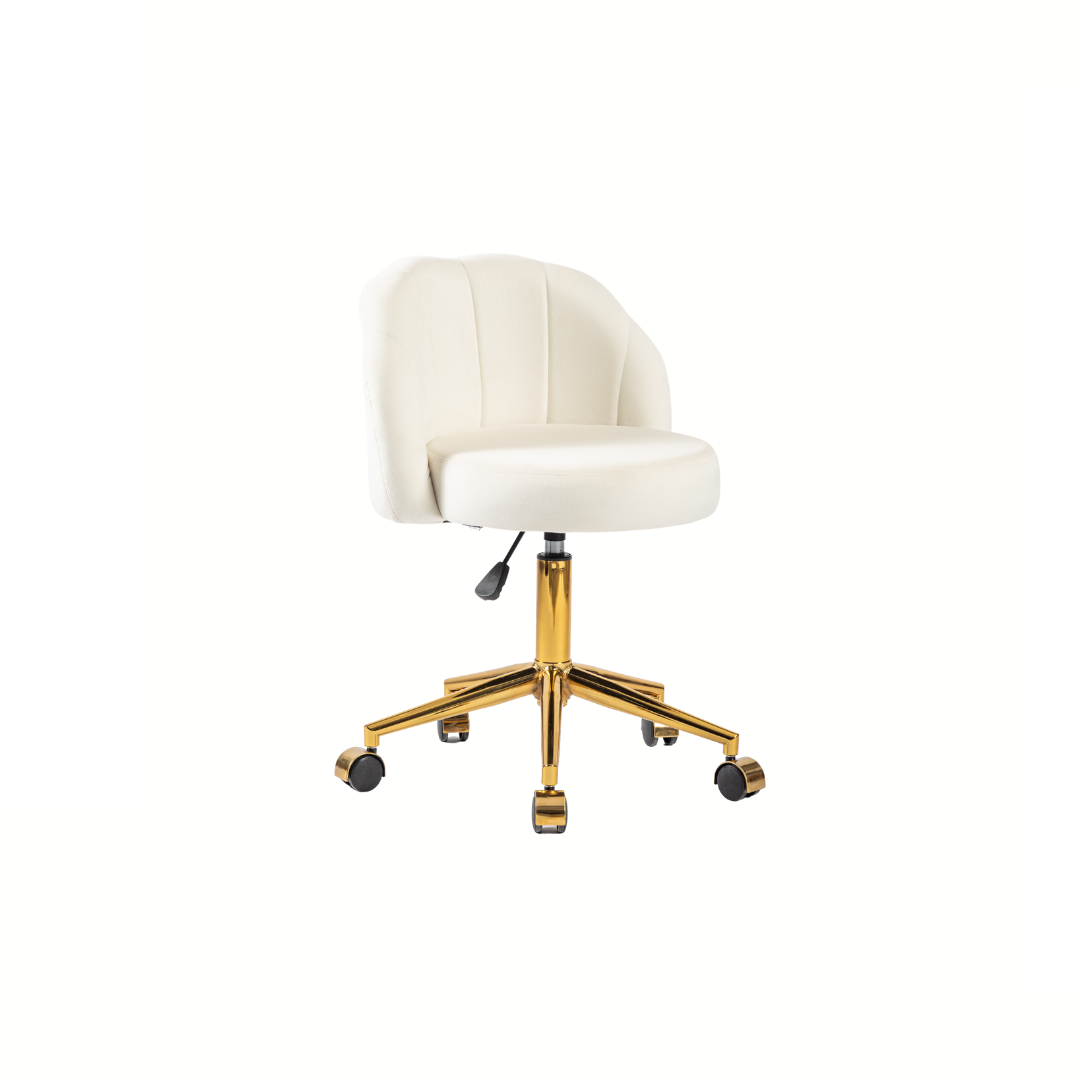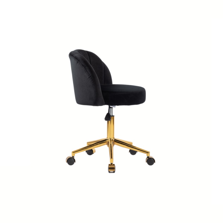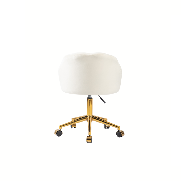 O destaque fica por conta dos acabamentos de alta qualidade. A base com aranha de 280mm recebe uma pintura epóxi dourada, que além de oferecer resistência e estabilidade, adiciona um toque de luxo ao design. Os rodízios em nylon possuem acabamento dourado, proporcionando mobilidade silenciosa e suave, sem abrir mão da sofisticação.