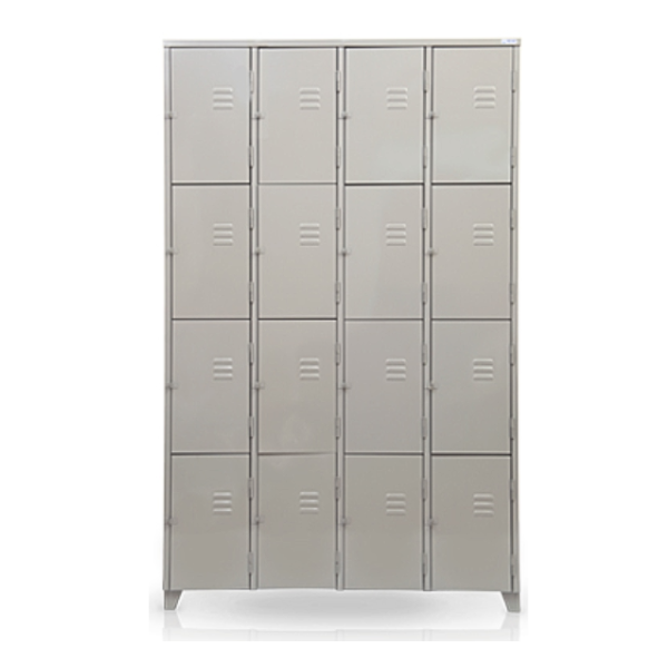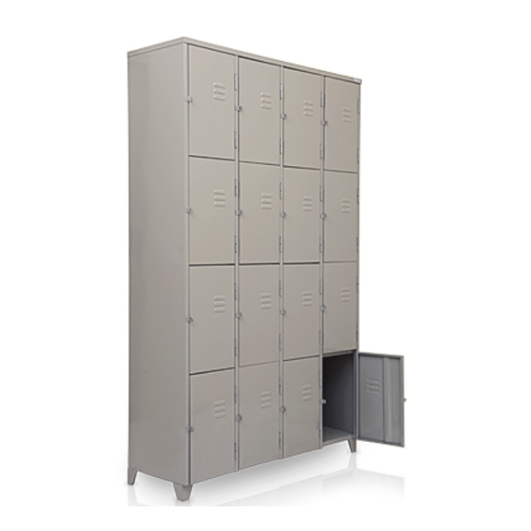 Com 16 vãos sobrepostos, cada compartimento é independente e reforçado com estrutura vertical interna, o que assegura resistência ao uso contínuo. O sistema de travamento tipo pitão permite o uso de cadeados externos, garantindo segurança e privacidade para cada usuário.